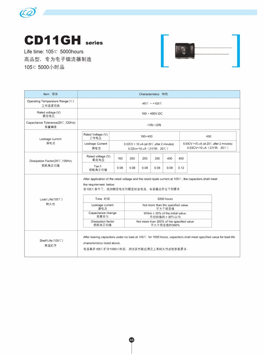 - Super long life electrolytic capacitor 82uF 400V