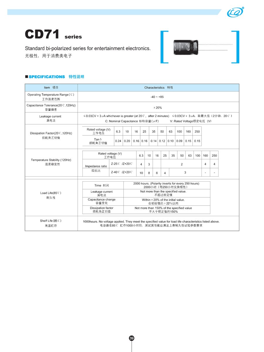 - Bi-polarized electrolytic capacitor 2.2uF 50V